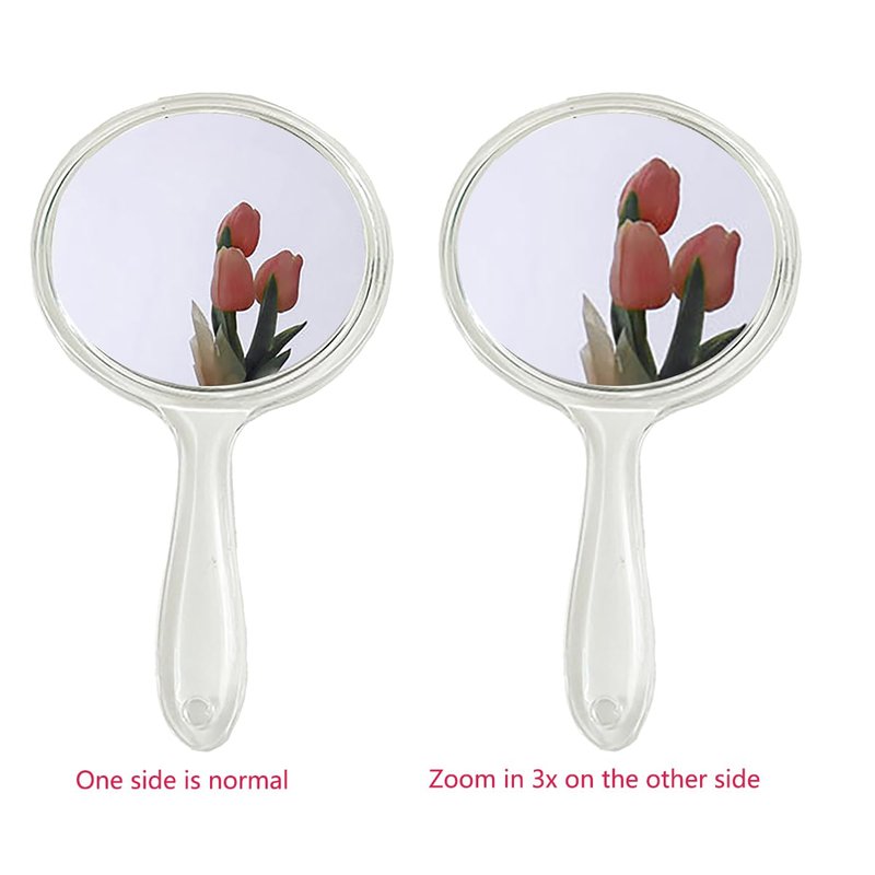 Dual-sided Mirror: 1X & 3X Magnification mirror. One side reflects your entire face with exceptional clarity, while the other side magnifies 3x for detailed tasks like applying mascara or plucking eyebrows. Compact and portable: Mirror Diameter of approximately 4 inches, SIZE: 4.8" X 8.3" (11.5cm X 21cm). Our mirror is travel-friendly without sacrificing its reflective capabilities. It's lightweight and easy to carry wherever you go. Premium quality: Crafted with care, our mirror features 4 layers of coating for superior reflection. Made from eco-friendly thickened ABS plastic, it ensures durability and a pleasing appearance. Versatile design: The mirror can be used handheld or hung. It's perfect for shaving, makeup application, and more. Elegant and suitable for gifting: The crystal clear frame of the mirror gives it an elegant and sleek look. It is ideal for personal use or as an exquisite and considerate gift for friends or family members.
