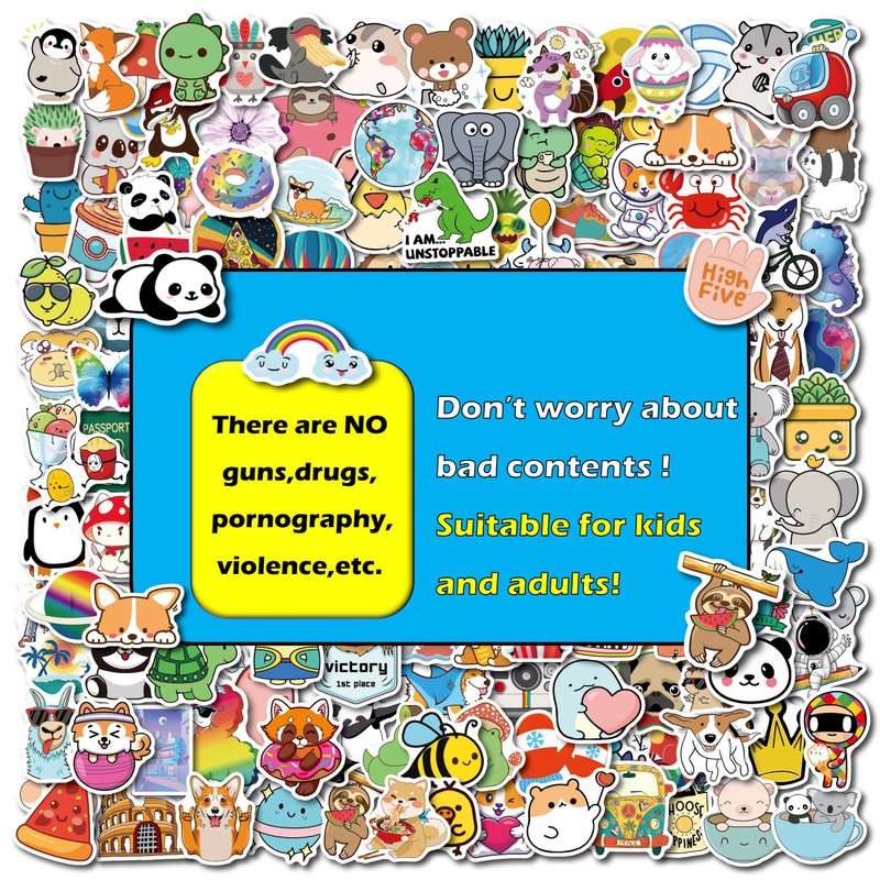 Introducing our Stickers for Water Bottles! With 200PCS of adorable and waterproof vinyl stickers, this sticker pack is perfect for kids and adults alike.Our stickers are made with high-quality vinyl PVC, ensuring that they are durable and long-lasting. Each sticker is 2-3.5 inches in size, which is 35% larger than other stickers on the market. Plus, there are no repetitive designs in each package, giving you a wide variety of choices to personalize your items.You can use these stickers to personalize your laptop, computer, keyboard, notebook, scrapbook, water bottles, cups, water mugs, phone case, MacBook, bike, bedroom, bicycles, travel case, and more! Let your creativity shine and showcase your unique style wherever you stick these kawaii stickers.Not only are these stickers stylish, but they are also waterproof and sun-proof. The high-quality vinyl material ensures that the stickers will maintain their gloss and brightness even after exposure to water or sunlight. Additionally, the stickers are made with non-marking glue, which means they can be easily removed without leaving any residue behind. You can even reuse them multiple times!Our Stickers for Water Bottles make the perfect gift for kids, teens, girls, women, adults, children, friends, and teachers. The cute and cool designs are sure to bring a smile to anyone's face. Simply clean the surface, stick on the sticker, and enjoy the lovely decals. It's that easy!We strive for 100% customer satisfaction, so if you have any issues with the product, please don't hesitate to reach out to us. We will do our best to solve any problems and offer a replacement or refund if necessary. So why wait? Get your Stickers for Water Bottles today and express your unique style!