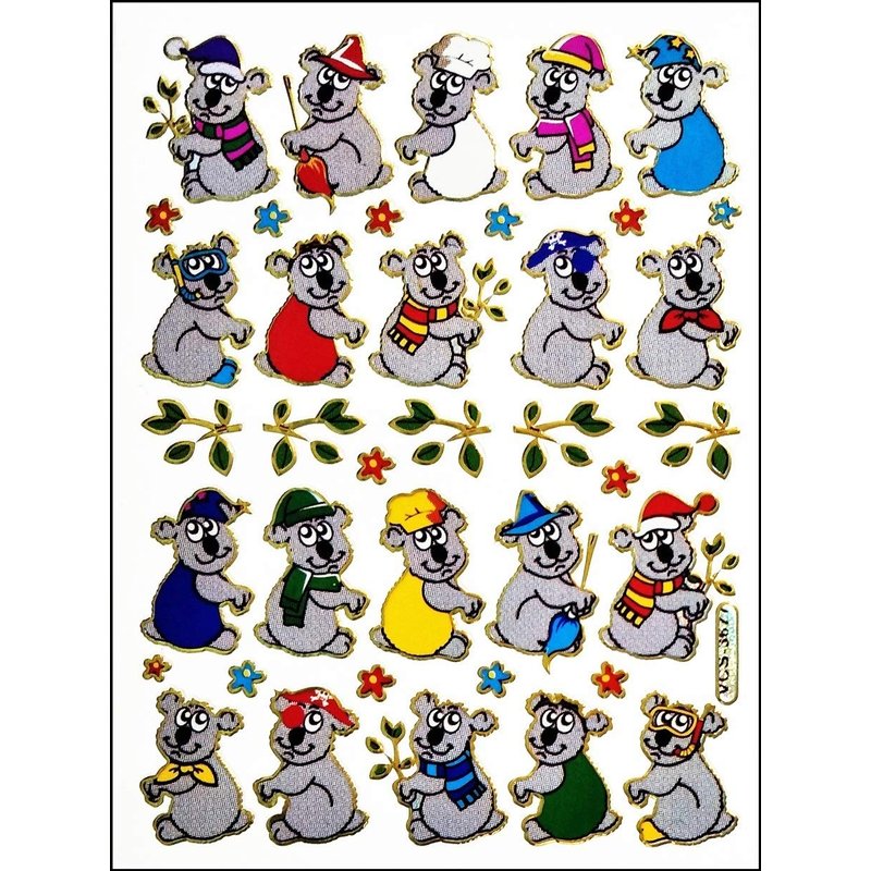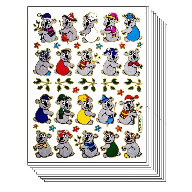 Stickers Glitter Pack 10 Sheets Cute Koala Bear Cartoon Paper Sticker for Children Kids Stickers Supplies School Scrapbooking Diary Card Birthday (04)