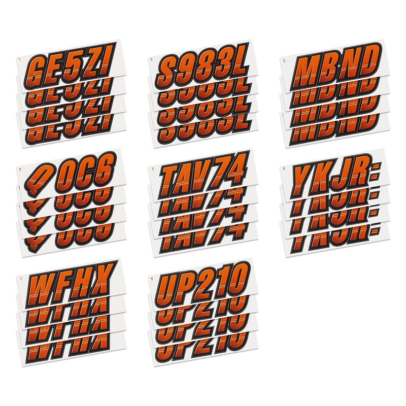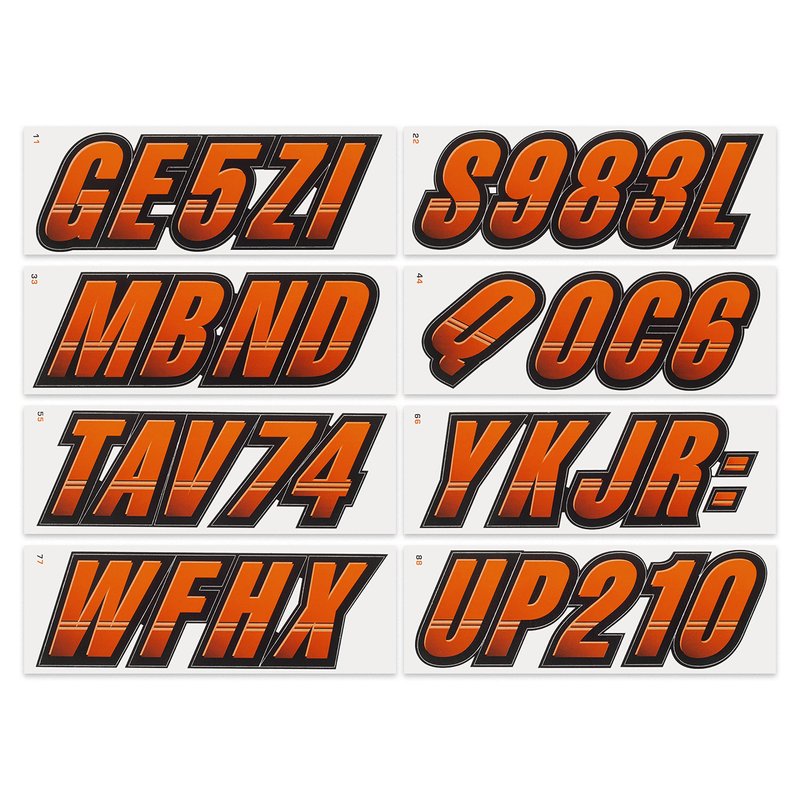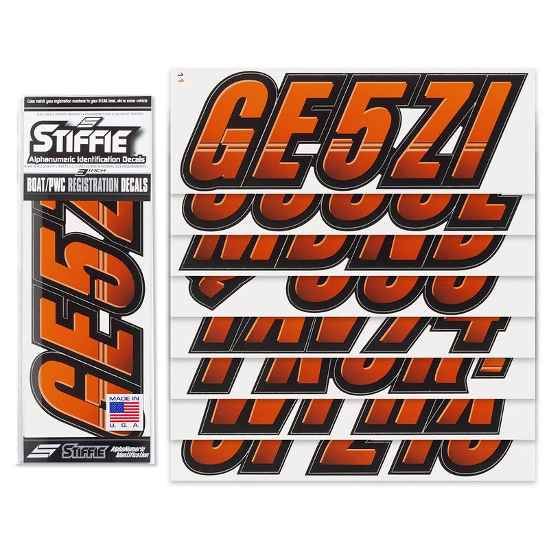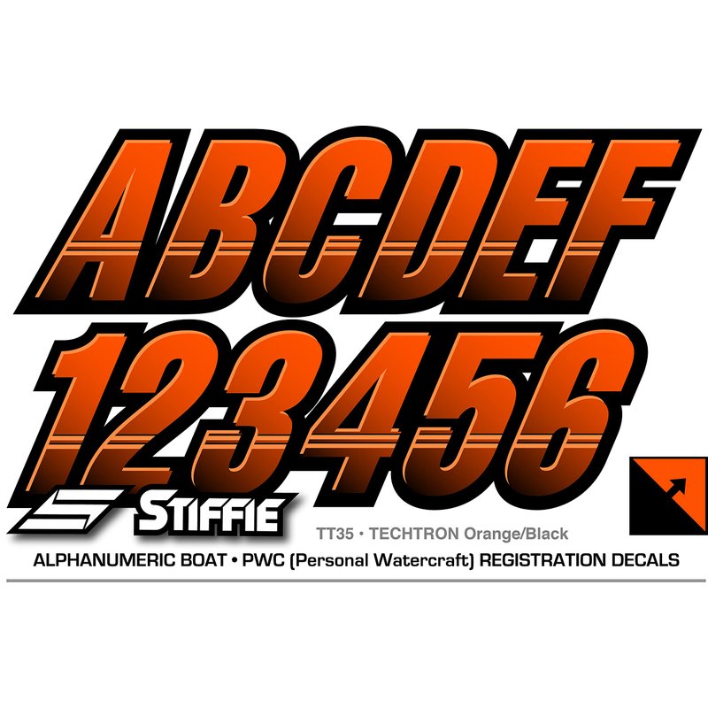 STIFFIE Techtron Orange/Black 3" Alpha-Numeric Registration Identification Numbers Stickers Decals for Boats & Personal Watercraft