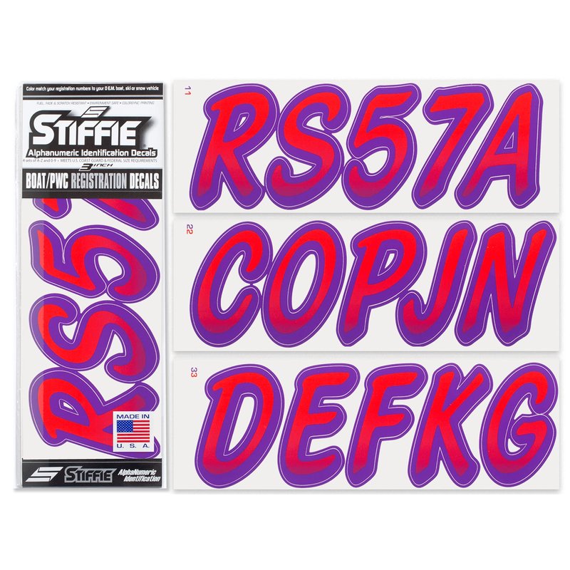STIFFIE Whipline Red/Purple 3" Alpha-Numeric Registration Identification Numbers Stickers Decals for Boats & Personal Watercraft