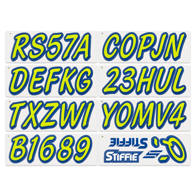 - All STIFFIE Alpha Numeric decals are finished with a UV Clear Coating to protect your decals from harmful Ultra Violet rays. STIFFIE uses 100% LEAD-FREE ink and marine grade vinyl. All STIFFIE decal products are environmentally safe and friendly.