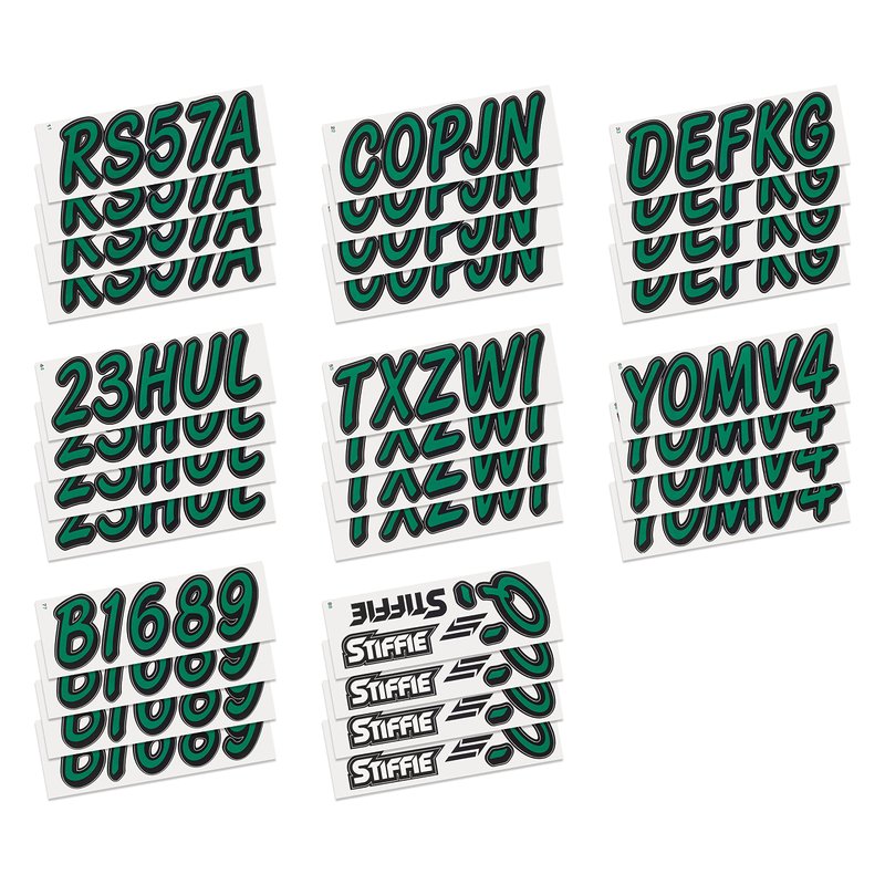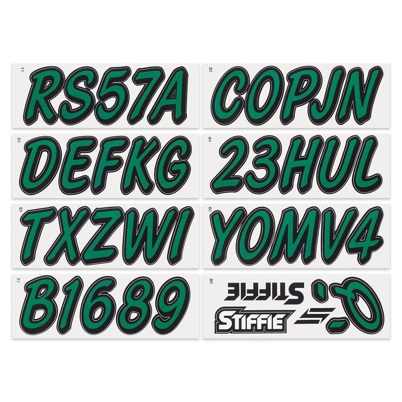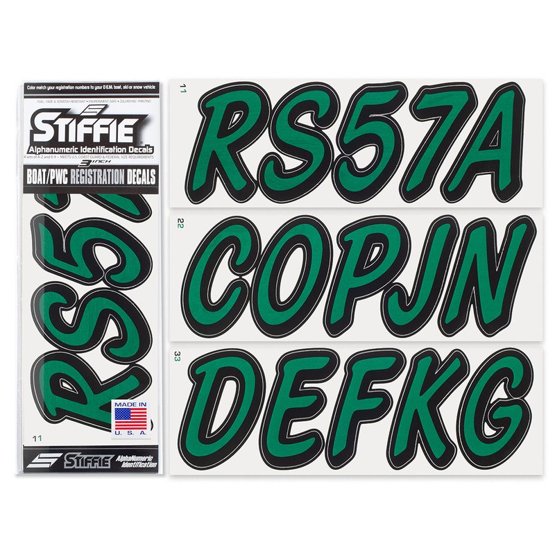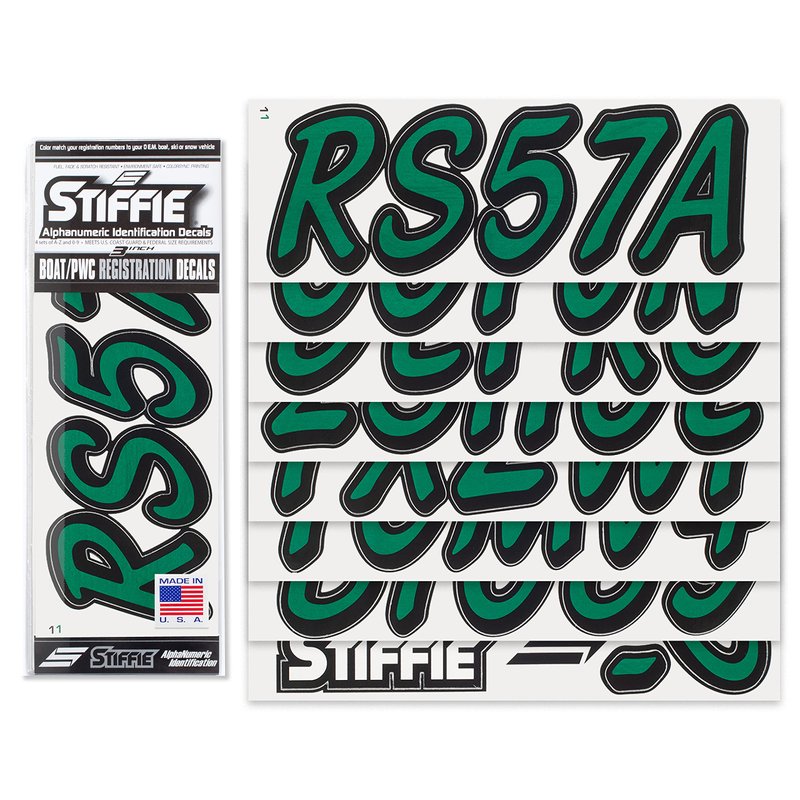 STIFFIE Whipline Solid Racing Green/Black 3" Alpha-Numeric Registration Identification Numbers Stickers Decals for Boats & Personal Watercraft