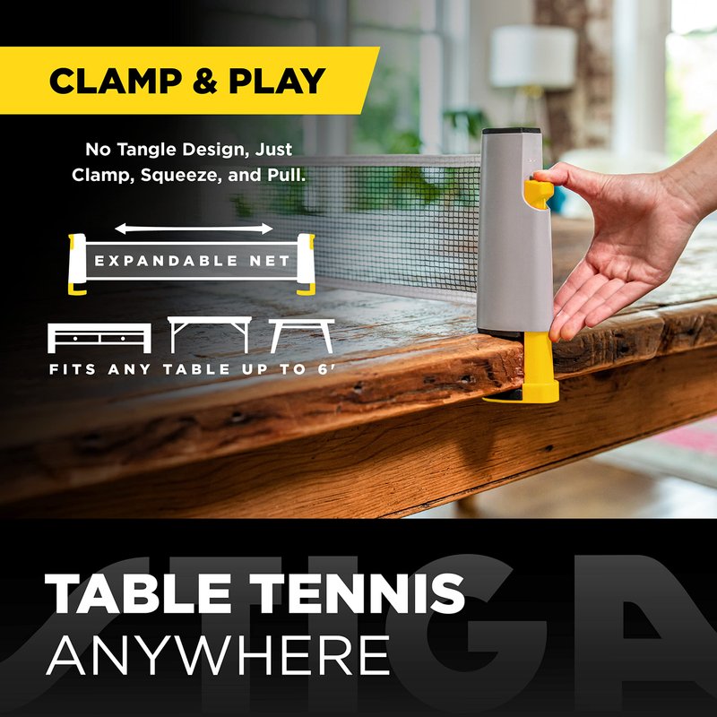 - CLAMP & PLAY – No-tangle design makes it a breeze to clamp down the post and pull the net across the table for quick play