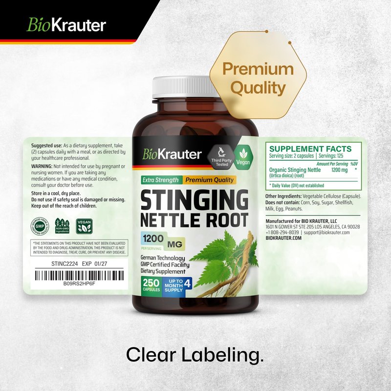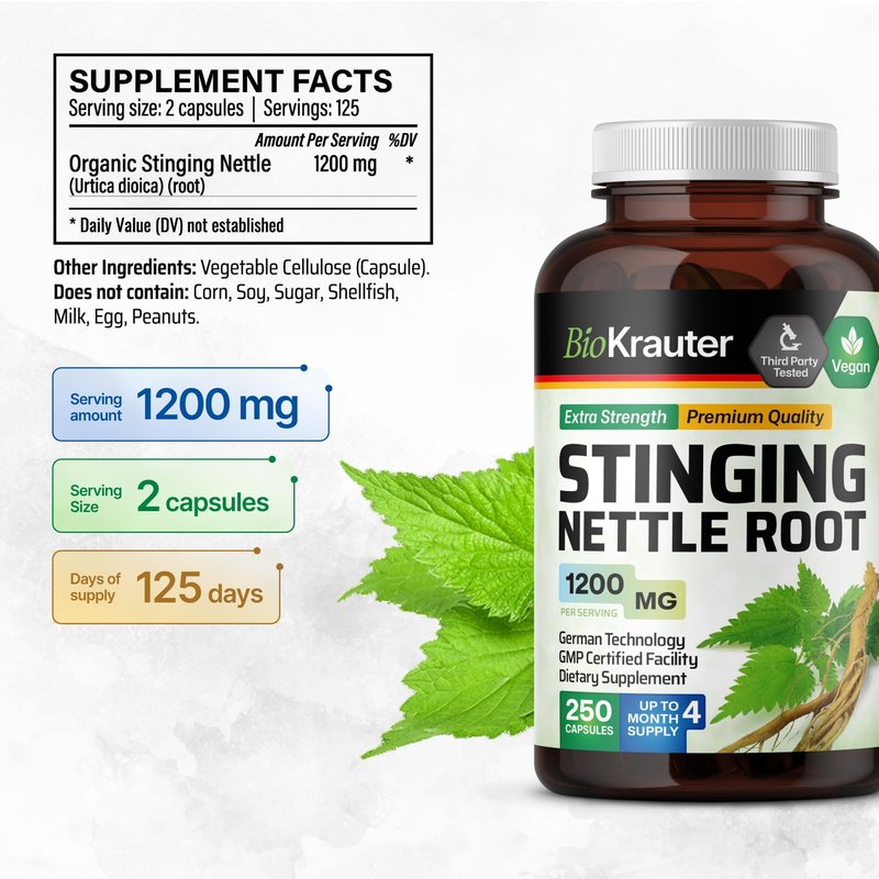 - Versatile Support - Improve your urinary health with BioKrauter’s Stinging Nettle capsules. While our vegan and organic Nettle root pills offer support for men's health, they also provide broad benefits for overall well-being.