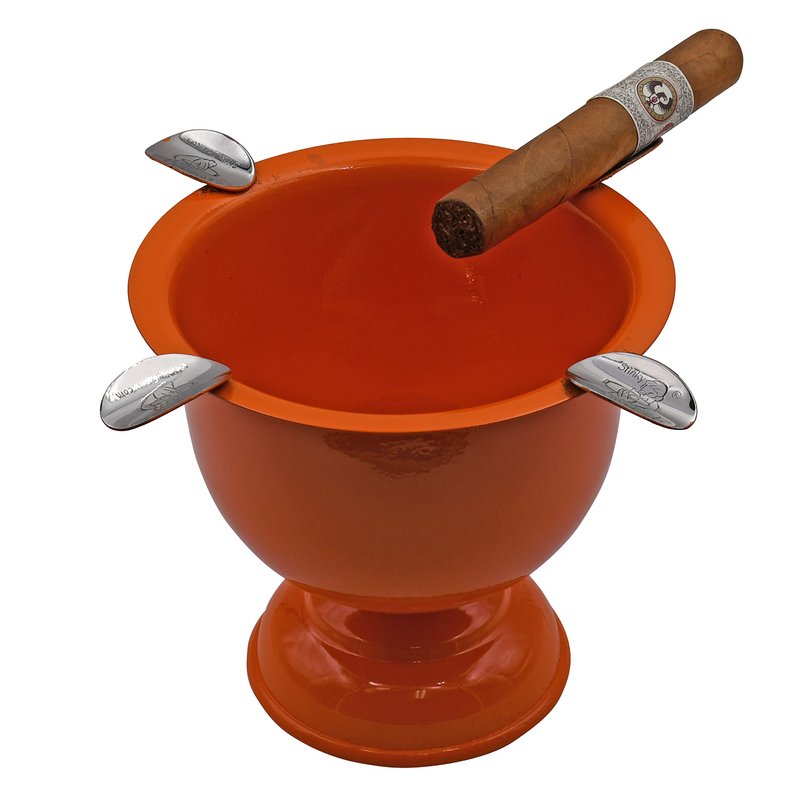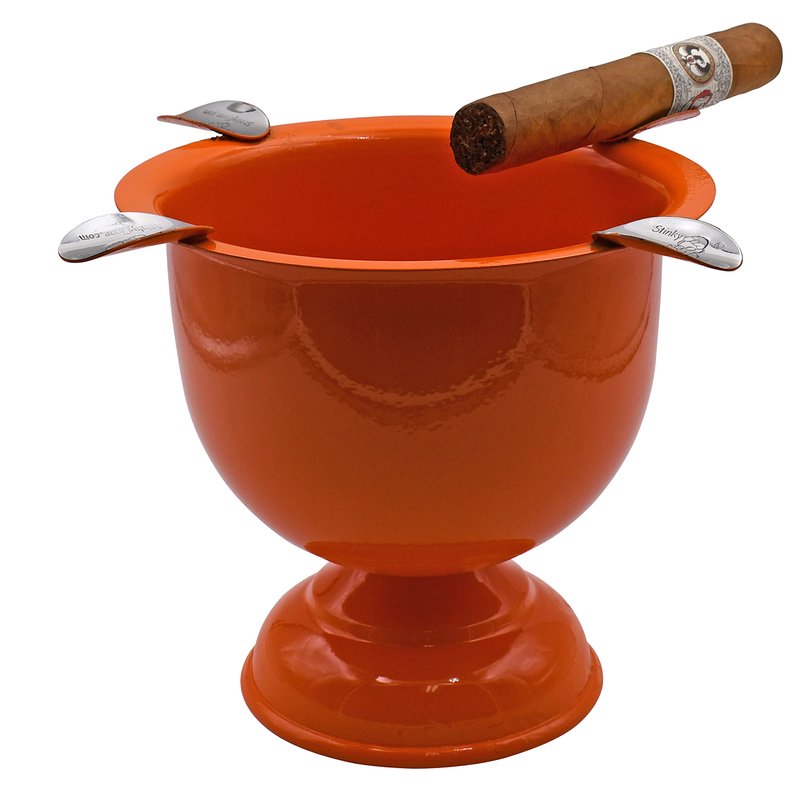 Stinky Cigar Ashtray, Tall and Deep Bowl Design, Windproof, 4 Stirrups, Competition Orange