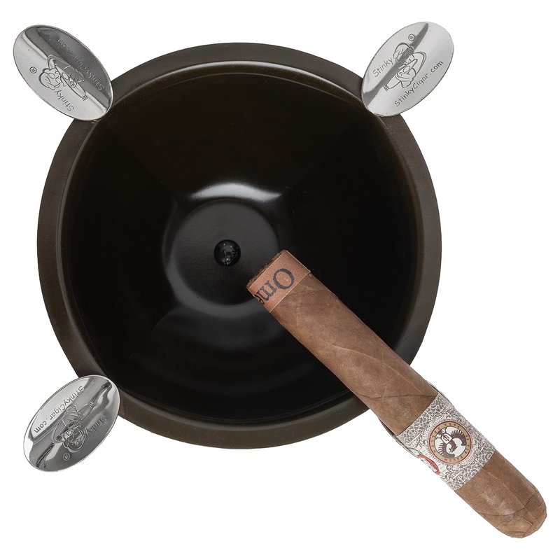 Stinky Cigar Ashtray, Tall Deep Bowl Design, 4 Stirrups, Windproof, Old Patina