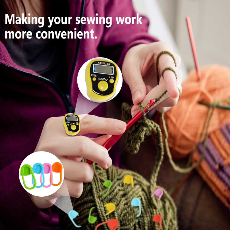 - 【Finger Counter】2 pcs finger counters are the most handy, must-have product for any knitter or crocheter. These cute digital ring row counters have an adjustable strap to fit around your thumb or finger. Press the main button each time you finish a row to keep track of your progress. The smaller button resets the count back to 0.