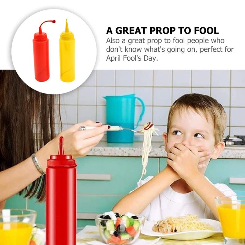 - Fake mustard prank The fake squirt mustard and ketchup bottles is vivid and realistic. Most people will mistake it for real ketchup and mustard at first glance, and will not find it to be a spoof bottle.ketchup bottles squeeze,april fools pranks