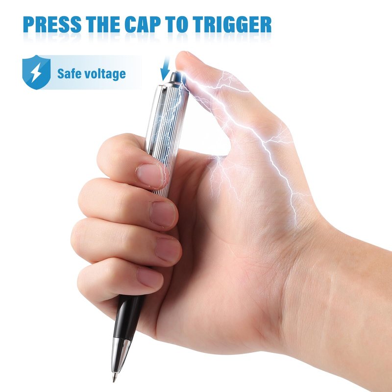 - 【Shocking pen】 stun your friends and family with this hilarious shocks pen, This funny shocking pen lets you trick your friends delivering an electric shocks when they go to use it!! Watch them scream in shocks as they pick up your realistic looking pen and receive a serious jolt.shocking pen,prank toys