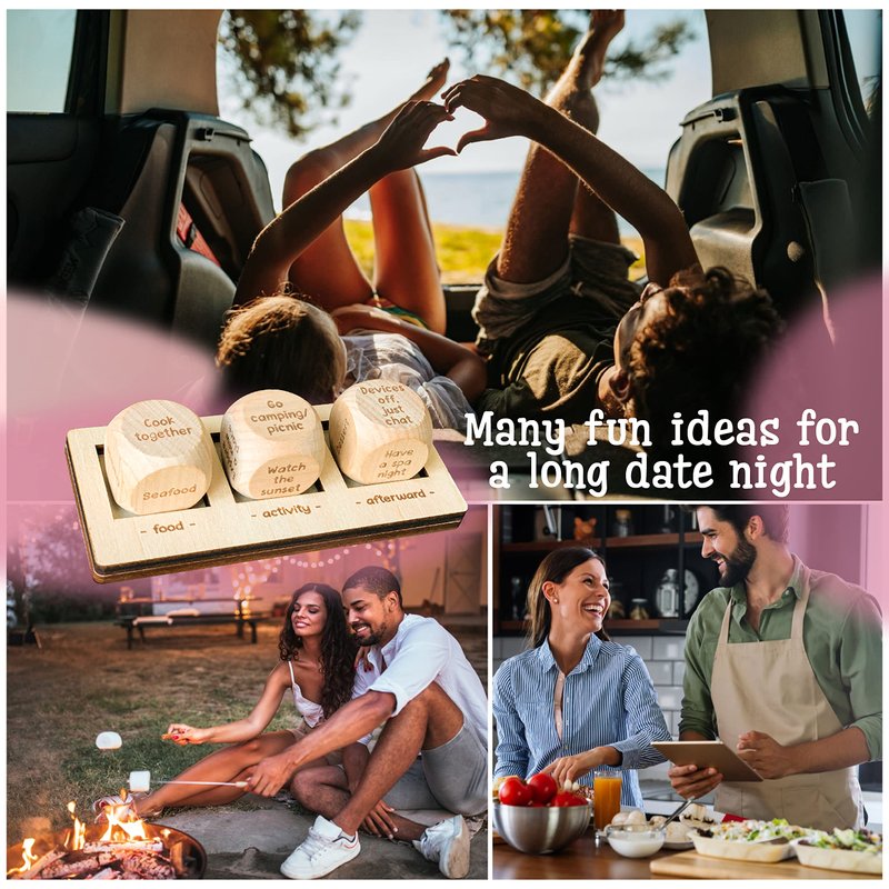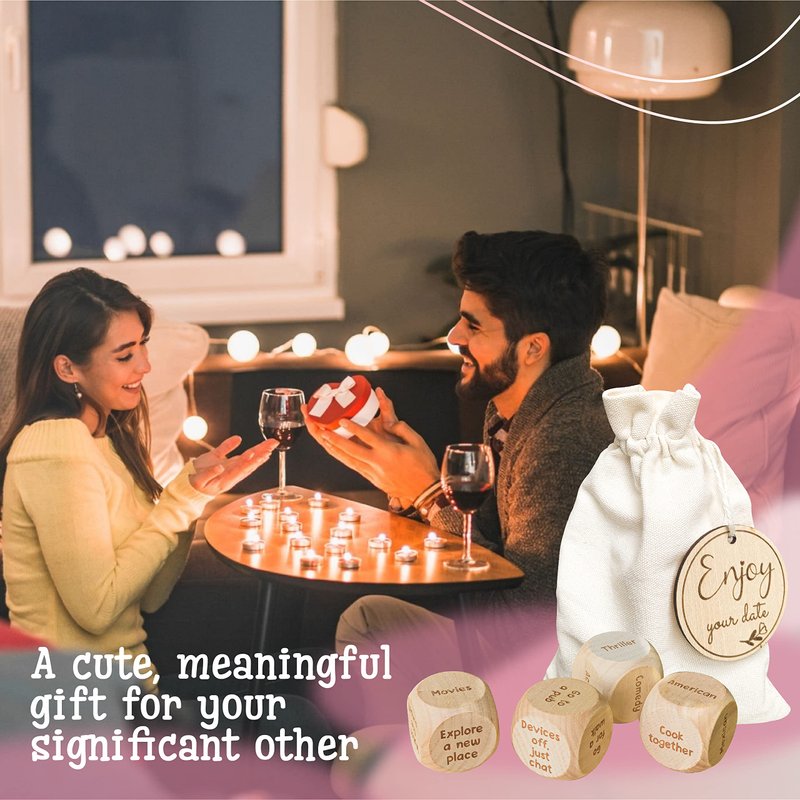 - WOOD DICE GAME FOR COUPLES: Our date night gifts can spice up your love and is ideal for a cozy date night. These couples dice can solve the “what should we do?” question on many dates, just roll the dice and let it decide your date ideas