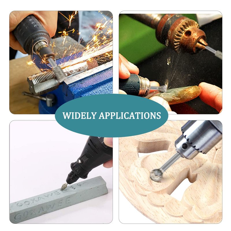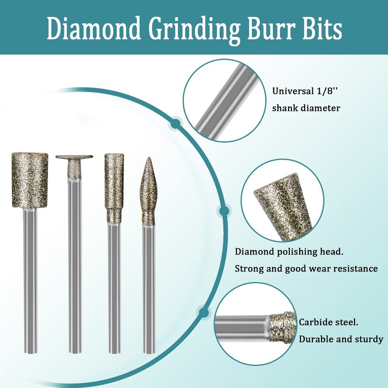 - √【Universal Compatiblity】 Diamond grinder bits set is featured with universal 3mm (1/8 inches) shank grinding drill bits, which compatible with most rotary tools or die grinders.