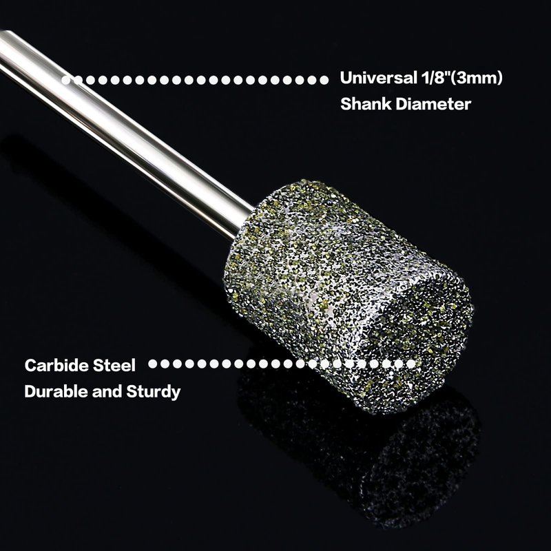 - √【Universal Compatiblity】 Diamond grinder bits set is featured with universal 3mm (1/8 inches) shank grinding drill bits, which compatible with most rotary tools or die grinders.