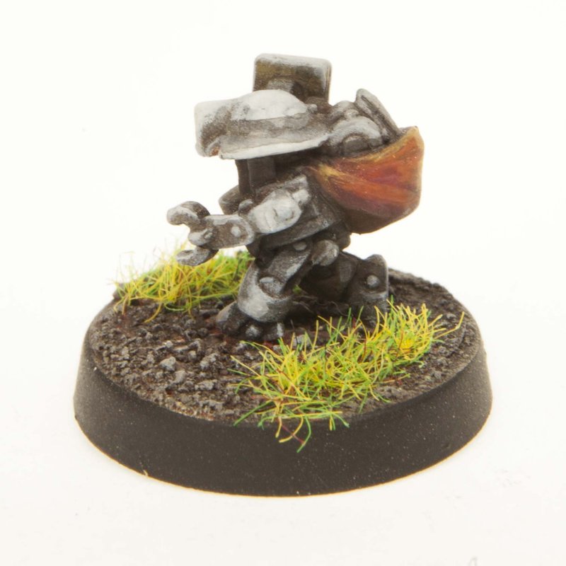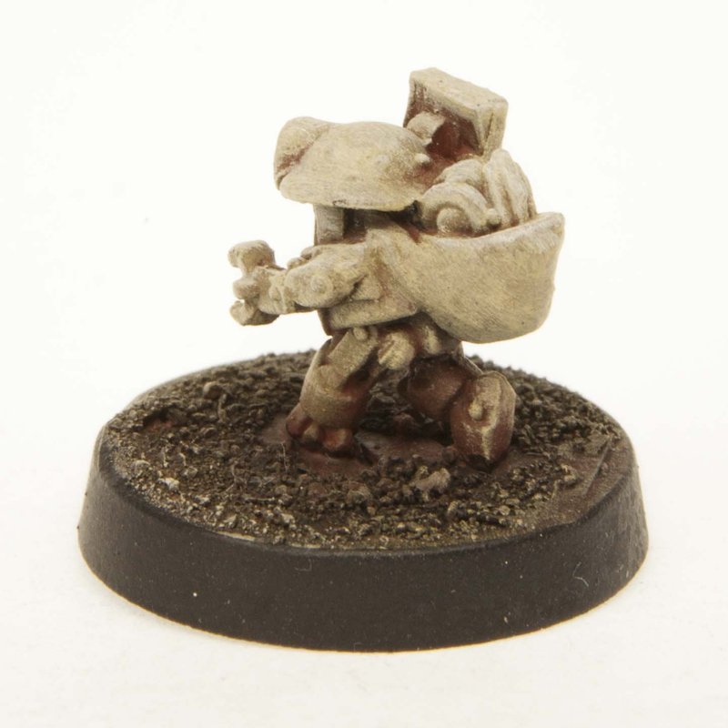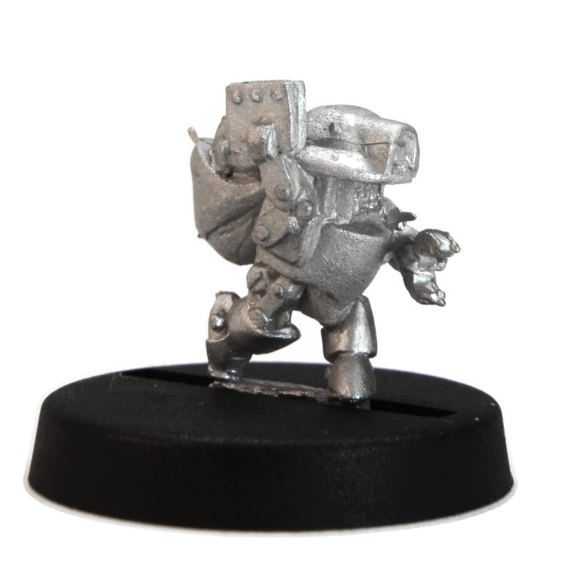 This 14mm tall Scrap Bot has a great amount of detail for dungeon-crawling, RPGs and table top war games. Miniature could be used as a Companion, Automaton, Robot, Janitor, Machine. This Scrap Bot is equipped with a sack full of spare parts . 20mm diameter slotted round plastic base included. Figure is made of 100% lead free pewter.