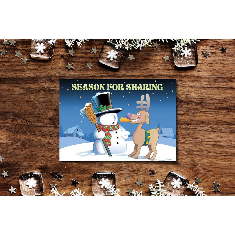 Stonehouse Collection Time For Sharing Funny Holiday Christmas Card & Envelopes are an easy way to spread the joy of the holidays and share the love with your friends, family members, and coworkers. Give them a gift they can treasure for a long time. Our 5x7 folded Christmas greeting cards are made from quality material that won't get easily creased or folded. 18 to a box. These holiday greeting cards have a glossy exterior finish, which makes the illustrations and graphics pop, while the non-glossy, matte interior of the card will allow you to write much more smoothly and easily without ink smudges. Our greeting cards feature a unique and funny design that will make your friends, family and loved ones smile from ear to ear. You can write a personalized message and make them feel special this holiday season. Send them these holiday cards with envelopes and make someone's holiday season a little more special with these unique and witty Christmas cards that are sure to put a smile on their face.