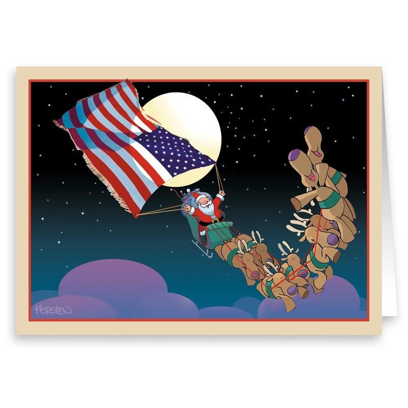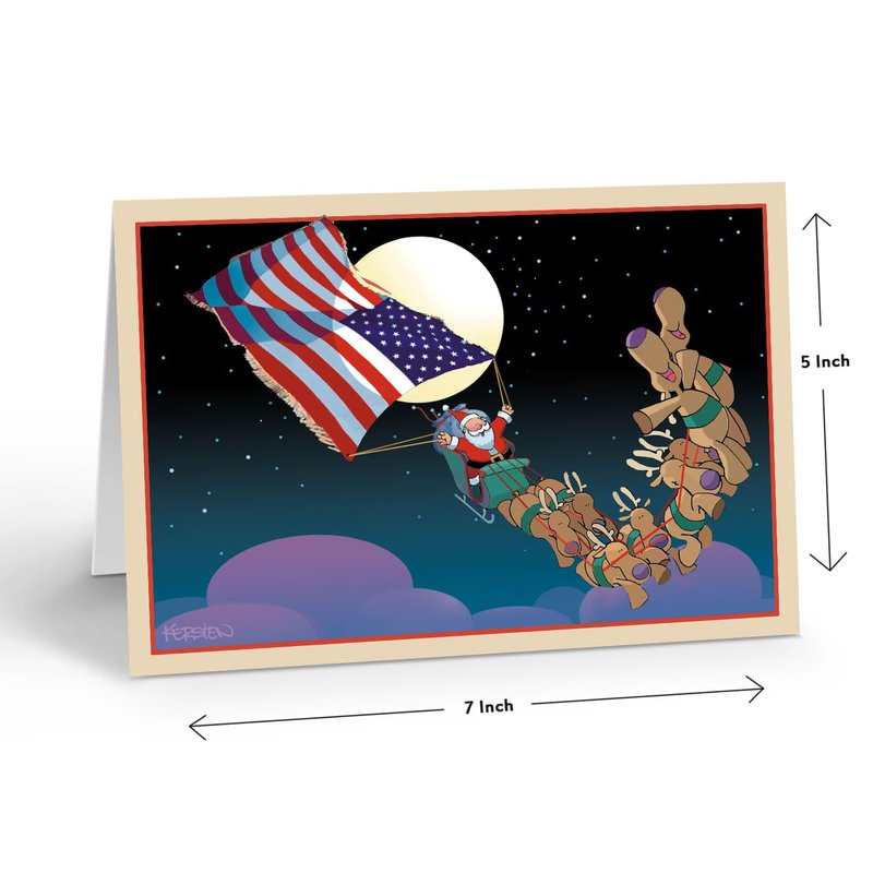 Stonehouse Collection Patriotic Santa Christmas Holiday Card & Envelopes are an easy way to spread the joy of the holidays and share the love with your friends, family members, and coworkers. Give them a gift they can treasure for a long time. Our 5x7 folded Christmas greeting cards are made from quality material that won't get easily creased or folded. These holiday greeting cards have a glossy exterior finish, which makes the illustrations and graphics pop, while the non-glossy, matte interior of the card will allow you to write much more smoothly and easily without ink smudges. Our greeting cards feature a unique and funny design that will make your friends, family and loved ones smile from ear to ear. You can write a personalized message and make them feel special this holiday season. Send them these holiday cards with envelopes and make someone's holiday season a little more special with these unique and witty Christmas cards that are sure to put a smile on their face.