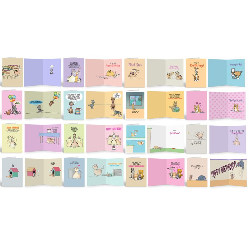 Stonehouse Collection Funny All Occasion Greeting Cards - Boxed Funny Dog & Cat Cards Assortment - Birthday Cards, Thank You Cards with Greetings Inside - Bulk Set for All Occasion, 16 Cards Per Box