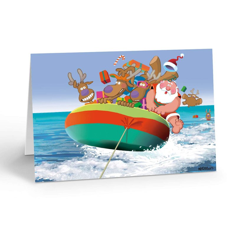 - Santa having a little fun on the water. Funny boating boxed Christmas cards.