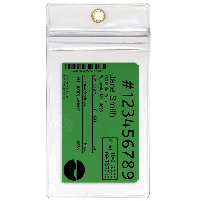 Nowadays schools, businesses, and private events must place a priority on security--and StoreSMART's Badge and ID Holders are an ideal way for individuals to display important identifying information. The crystal clear vinyl allows ID cards and corporate badges to be viewed easily, while the reinforced edges and weather-resistant zipper closure protect your important documents. Our Badge and ID Holders are also a great way to carry tickets, licenses, school IDs, keys, and more Product Features: Made of durable crystal clear vinyl. Double-reinforced header with a metal grommet hang hole for increased durability. Weather-resistant zipper closure protects your valuables and information from moisture, dirt, and sand. Also great for fishing licenses, school IDs, metro cards, and keys. Overall size: 2 7/8" x 5 3/8". Inside capacity: 2 1/2" x 3 7/8". Proudly manufactured in the USA.