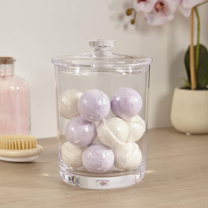 - Perfect Size for Vanity and Bath: With dimensions of 7.75 inches by 5 inches, this jar is perfectly sized for use in vanities and bathrooms. Its crystal-clear design enhances visibility and makes it easy to locate items while adding a touch of elegance to your space. Additionally, its durable construction with a firm base and removable lid ensures long-lasting use.
