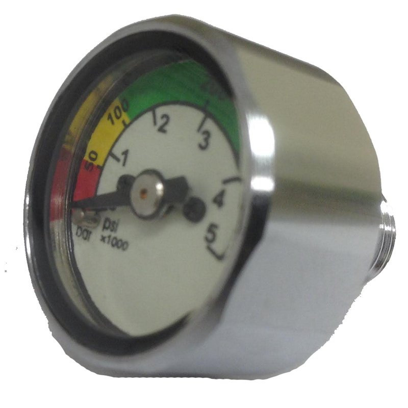 Pony Bottle Gauge is a fully functional SPG rated to 5,000 psi (350BAR). Ideal for back-up air supplies or decompression tanks.