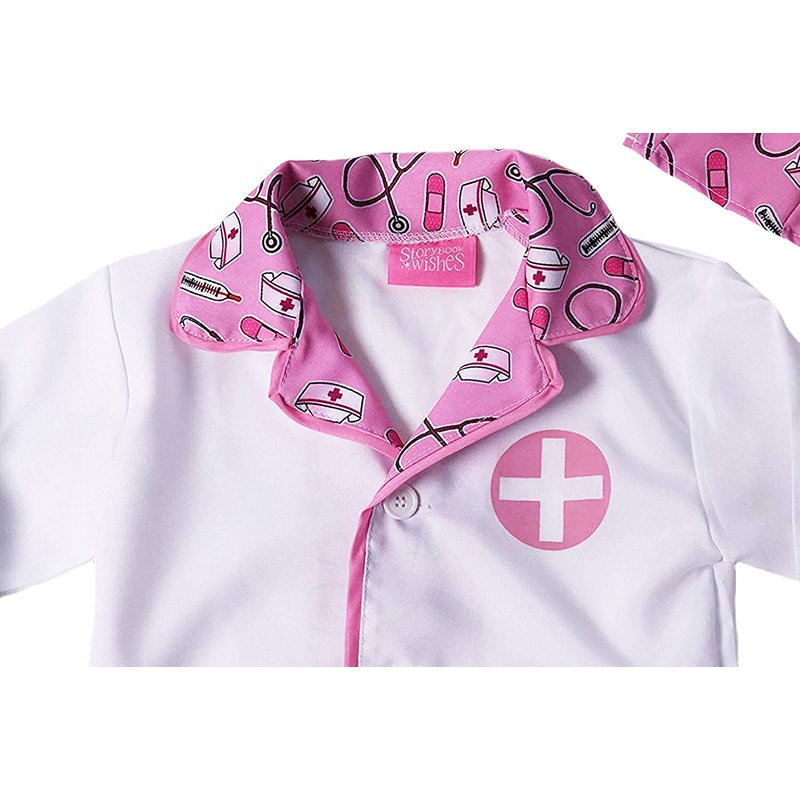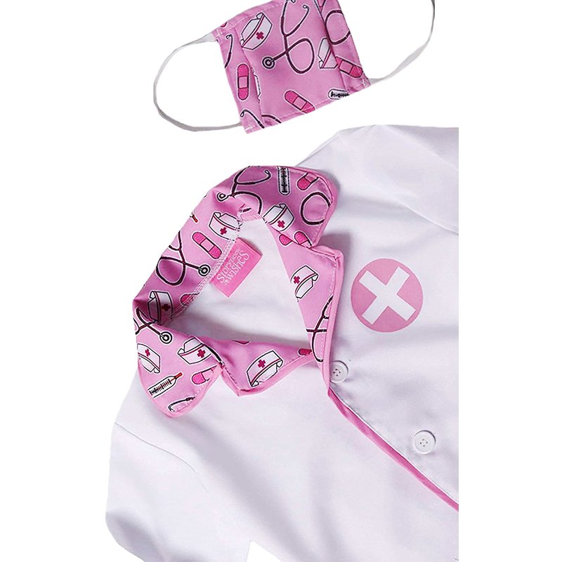 StoryBook Wishes Kids Doctor Coat & Face Mask for Kids Doctor Costume | Doctor Dress Up for Kids | Pink and White - Size 4-6