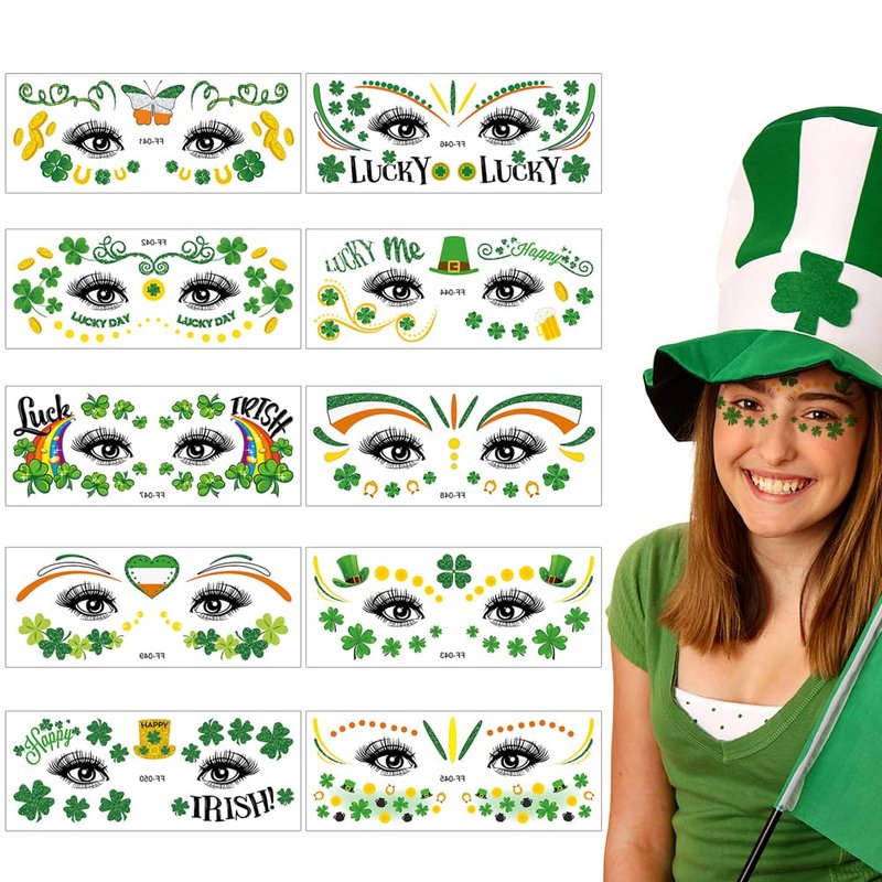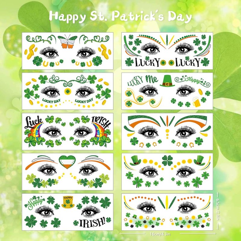 - Application:These St. Patrick's face tattoos stickers are suitable for children's birthday parties, St. Patrick's Day and party gifts.Creating a festive atmosphere in home, office and party site for your family and friends.