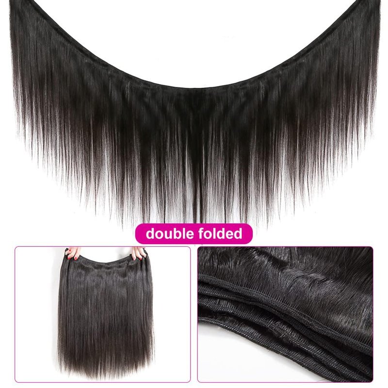 - Human Hair Bundles Quality:Double Machine Weft,No Shedding,No Smell,Healthy Ends ,Full and Thick,No Split,No Tangle,Tight & Neat,100% Human Remy Hair Straight Bundles.