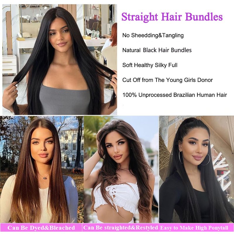 - Suitable for any Occasion:Straight Bundles Human Hair Suitable for Daily,Party,Wedding,Fancy Dress,Halloween,Lazy Girls,Daily Working or Workout,As a Gift,Cosplay or any Other Occasion You Want.