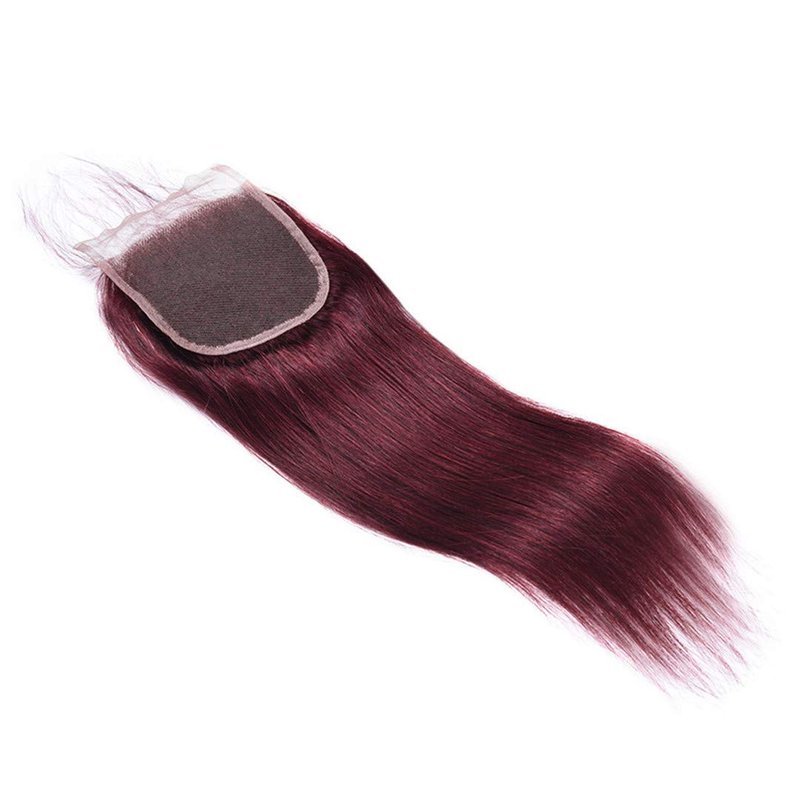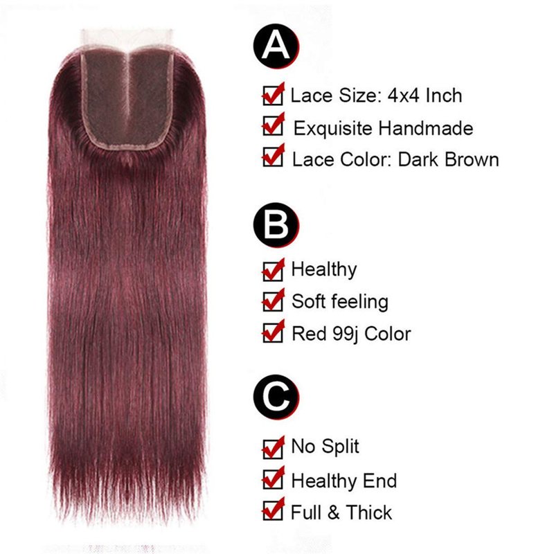 Straight Hair 8A Brazilian Virgin Hair 99j Burgundy Straight Hair 100% Unprocessed Human Hair Weaves 3 Bundles with Lace Closure 4x4 Free Part Red Wine Color Weft Weaves 12 14 16 with 12C,burgundy…