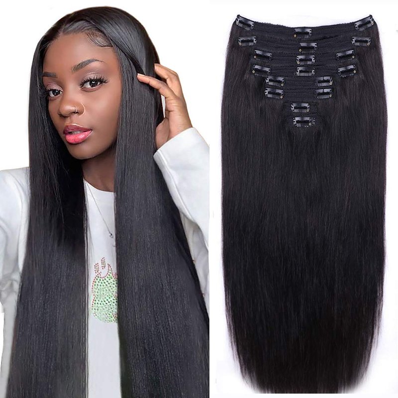 - ★Double Weft: Straight clips in Hair Extensions has Well Crafted Double Wefts, two wefts sewed together- tight weft and no shedding.Kept Thickness From Top to End,Tangle Free; Sewn with Quality Clips, don't fall out easily,Secure & Comfortable to Wear.