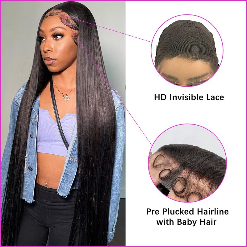 Straight Lace Front Wigs Human Hair 13x4 HD Lace Frontal Wigs Human Hair Transparent Glueless Wigs Human Hair Pre Plucked Lace Front Wig Wiht Baby Hair #1 Color Human Hair Wigs for Black Women 22 Inch
