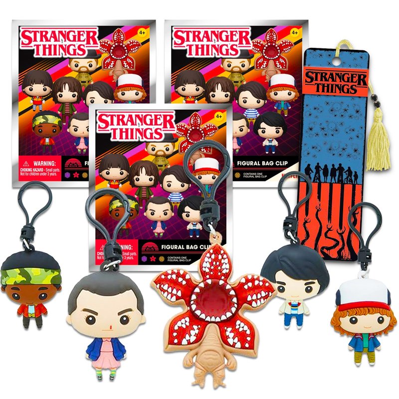 - Crenstone Exclusive Stranger Things Blind Bag Party Favors 3 Pack – Bundle with 3 Stranger Things Bag Clips Plus Bookmark | Stranger Things Backpack Clip for Kids.