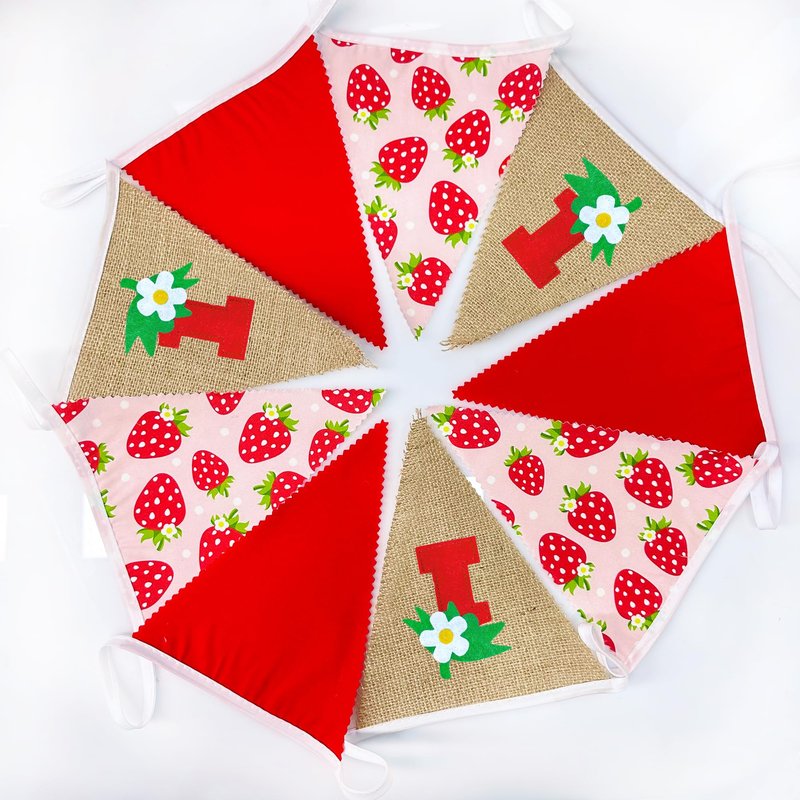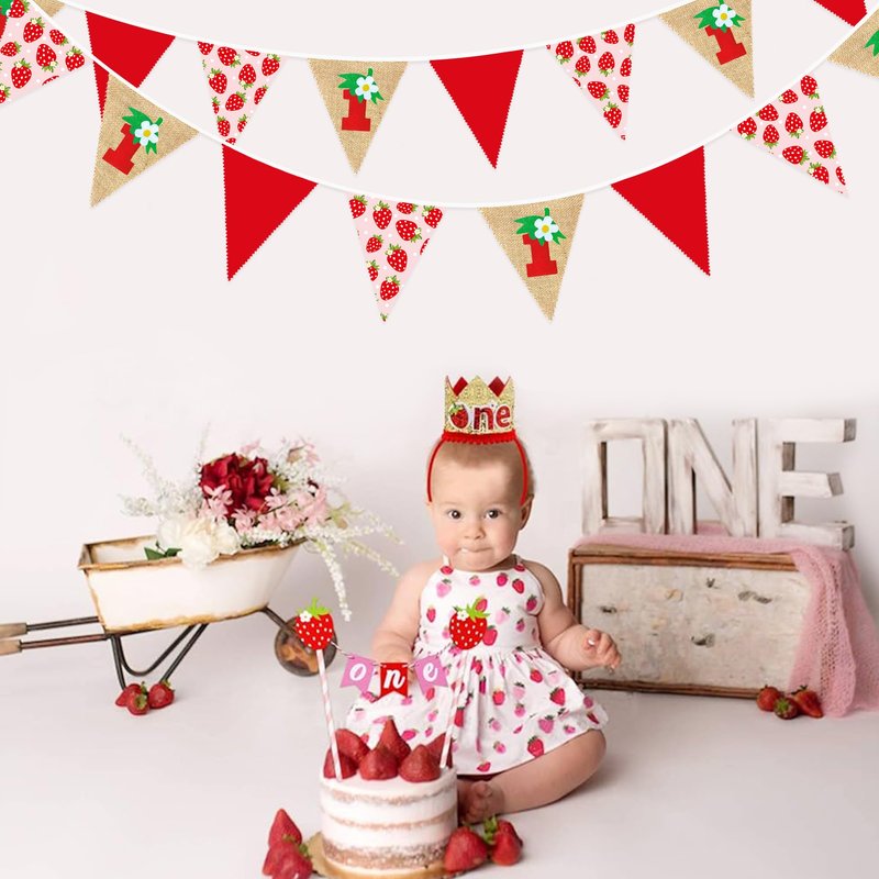 - Package Contains - 1 packs of sweet strawberry 1st burlap birthday garland banner,Size of each flag is 6.3 x 7.87 inch.Total 8.53 feet with 13pcs flags.