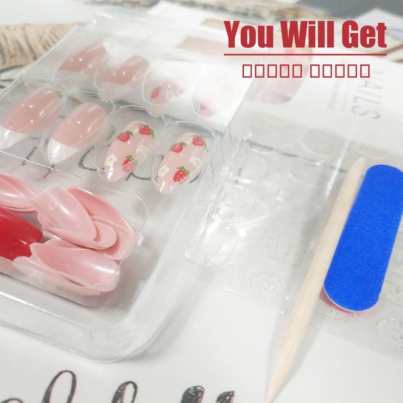 - 【Strawberry Stick on Nails】 Fresh press on nails is made of high-quality ABS environmental friendly acrylic material. It is odorless, durable and not easy to fade. provides you with a comfortable and wonderful experience.