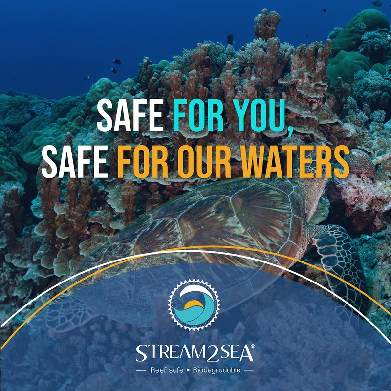 Stream2Sea products are made with eco-friendly and eco-conscious ingredients that are reef safe! Made with non-toxic, all-natural ingredients, NO Synthetic fragrances, additives, and preservatives, free from Carbomer, Triclosan, and Paraben. Our lotion bottles are made with Sugarcane Resin, our bottles are also 97% post-consumer recycled content.