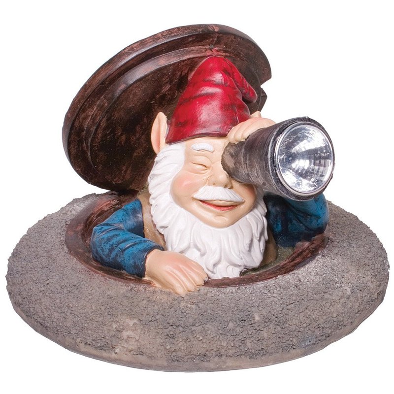 Streamline - Peek-a-Boo Gnome Solar Light Peek-a-Boo Gnome Solar Light. Brighten your landscape with a friendly point of view with these spirited LED solar lights. Features 2 long lasting LED lights and on/off switch, turns on automatically at dusk and off at dawn.