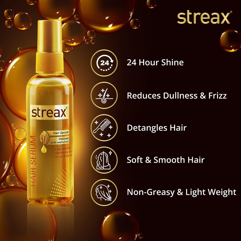Streax Hair Serum Enriched with Walnut Oil Gives Frizz-free Satin Smooth Hair 90 ML
