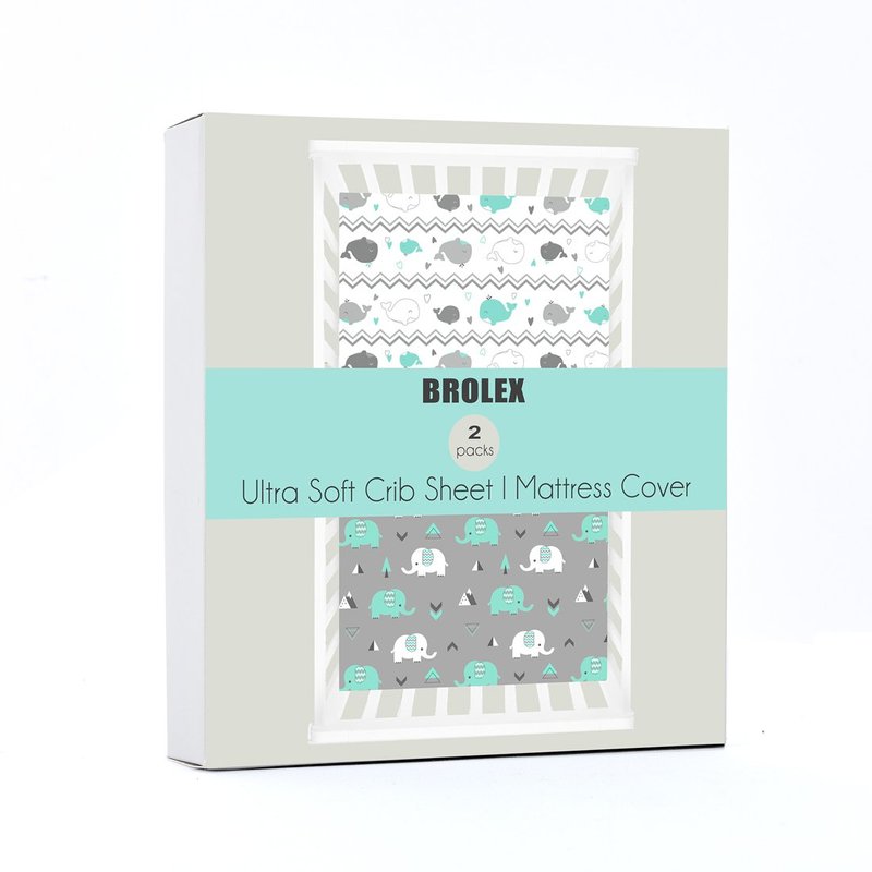 Stretchy Fitted Crib Sheets Set BROLEX 2 Pack Portable Crib Mattress Topper for Baby Boys Girls,Ultra Soft Jersey,Full Standard,Elephant & Whale