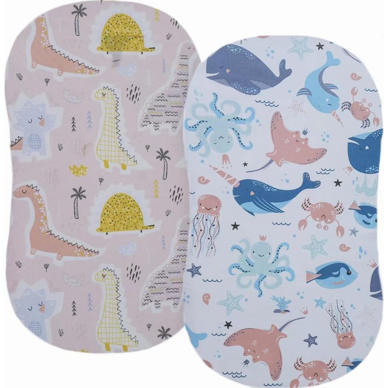 Stretchy Ultra Soft Fitted Bassinet Sheet Set 2 Pack, Universal Fit for Bassinets Baby Cradle Moses Basket Oval Rectangle Pad/Mattress, Dinosaurs Bassinet Sheets for Girls and Boys