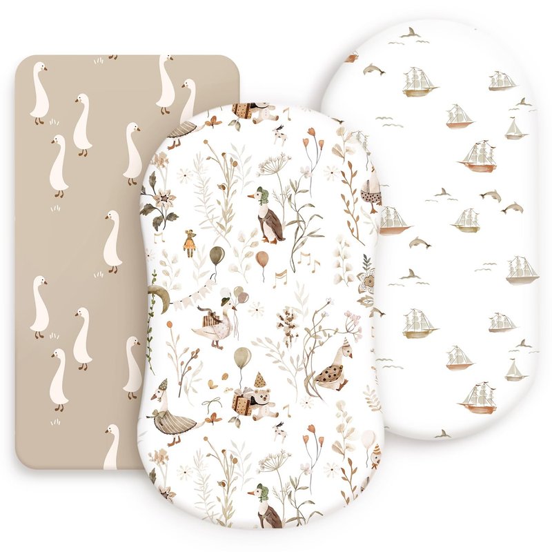Stretchy Ultra Soft Fitted Bassinet Sheets 3 Pack, Universal Fitted for Oval Rectangle Bassinet Mattresses Safe and Snug, Stylish Bassinet Sheet Gender-Neutral Print for Baby