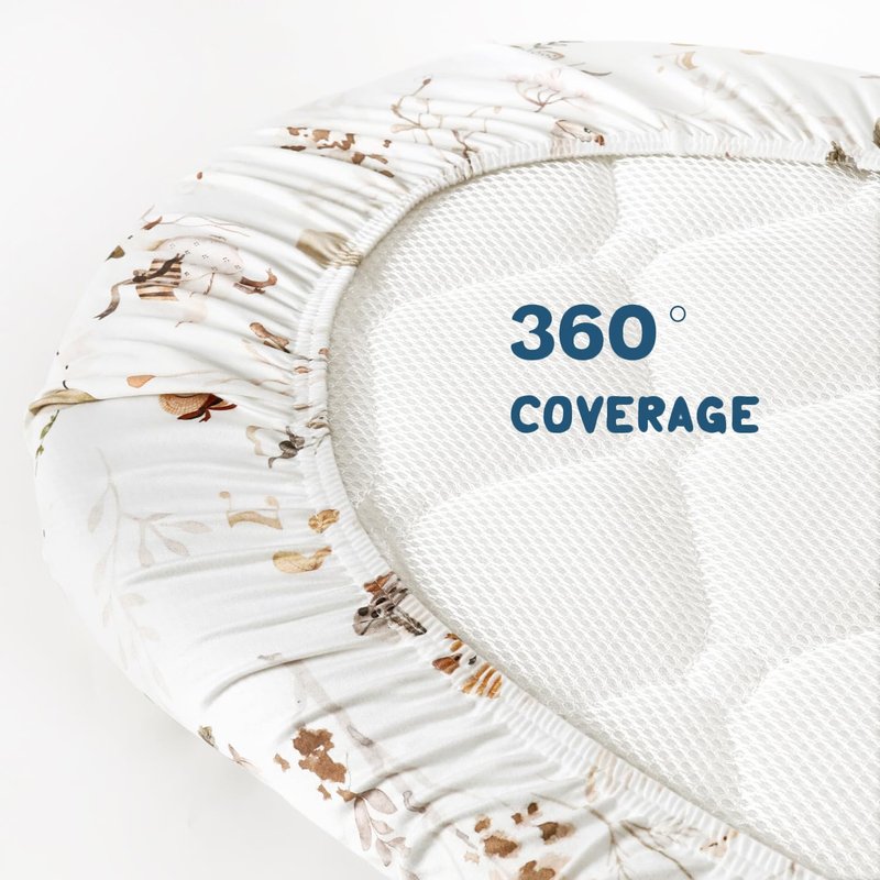 - Universal Fit – Measuring 32" x 16" x 5". Our bassinet sheets fit almost all standard oval, round, rectangle, hourglass shaped bassinet mattress. Each bassinet mattress pad cover comes with an elastic band encased at the bottom for safety.