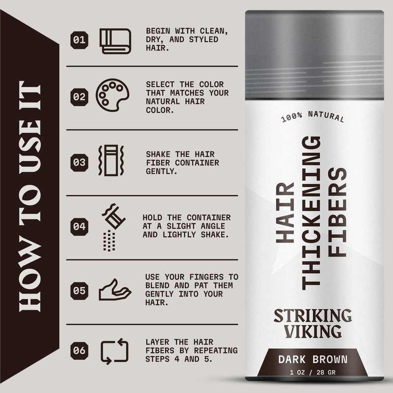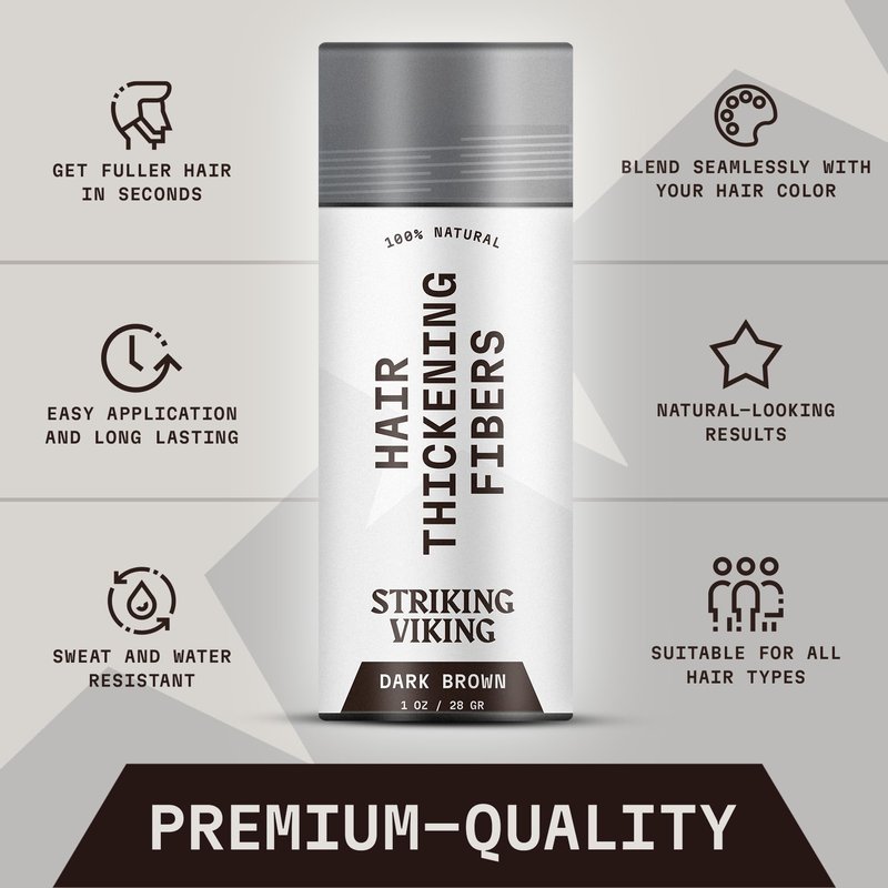 Striking Viking Hair Fibers for Thinning Hair - Hair Building Fibers (Dark Brown) 28g - Naturally Derived Formula - Long Lasting Hair Powder for Undetectable, Thicker Looking Hair for Men & Women