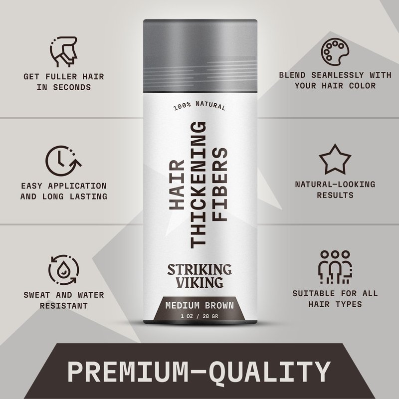 Striking Viking Hair Fibers for Thinning Hair - Hair Building Fibers (Medium Brown) 28g - Naturally Derived Formula - Long Lasting Hair Powder for Undetectable, Thicker Looking Hair for Men & Women