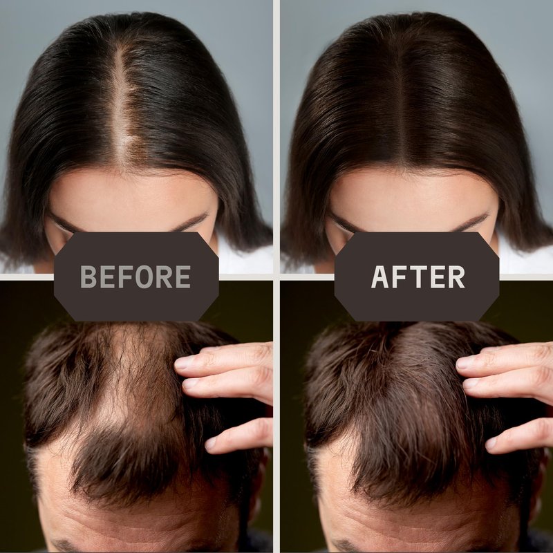 - FULLER & THICKER APPEARANCE: Achieve a more voluminous and denser look by using the natural hair-building fibers, effectively minimizing the unwanted appearance of thinning hair. Suitable for both men and women, this hair thickener utilizes authentic hair fibers, enabling you to effortlessly achieve the impression of a fuller and thicker head of hair, promoting a more youthful appearance instantly.