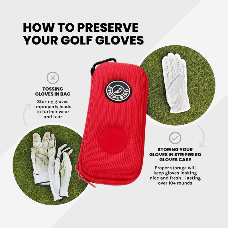 Stripebird - Golf Performance Gloves Holder Case (Major Red) - Protect and Keep Golf Gloves Dry - Moisture Free Storage Design - Includes Golf Bag Clip for Golfers