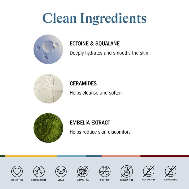 - Gentle Hydration: Creamy facial cleanser with Ectoine, Squalane and Ceramides to remove impurities while hydrating and soothing