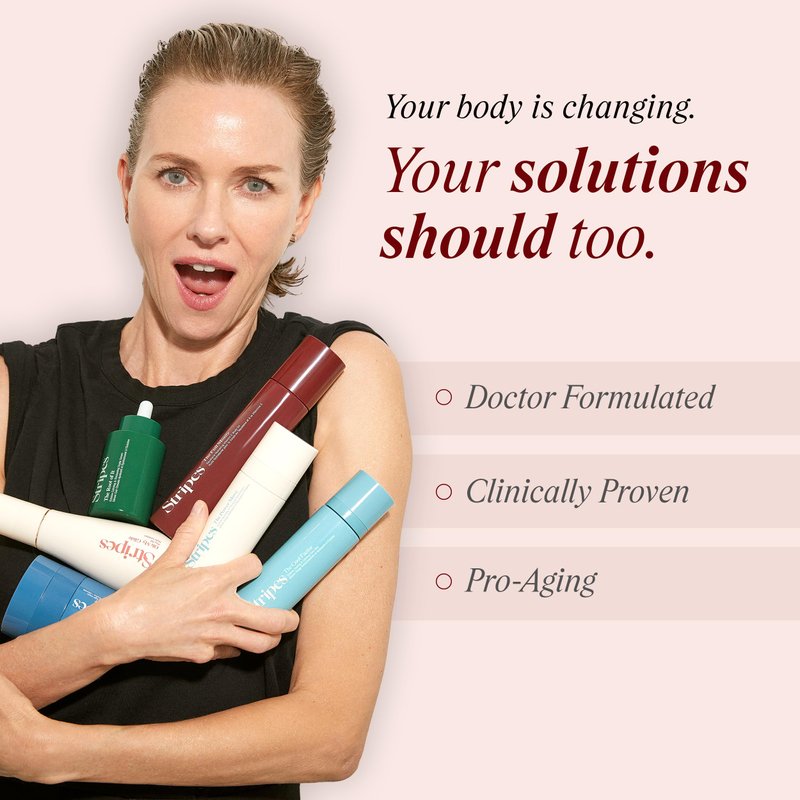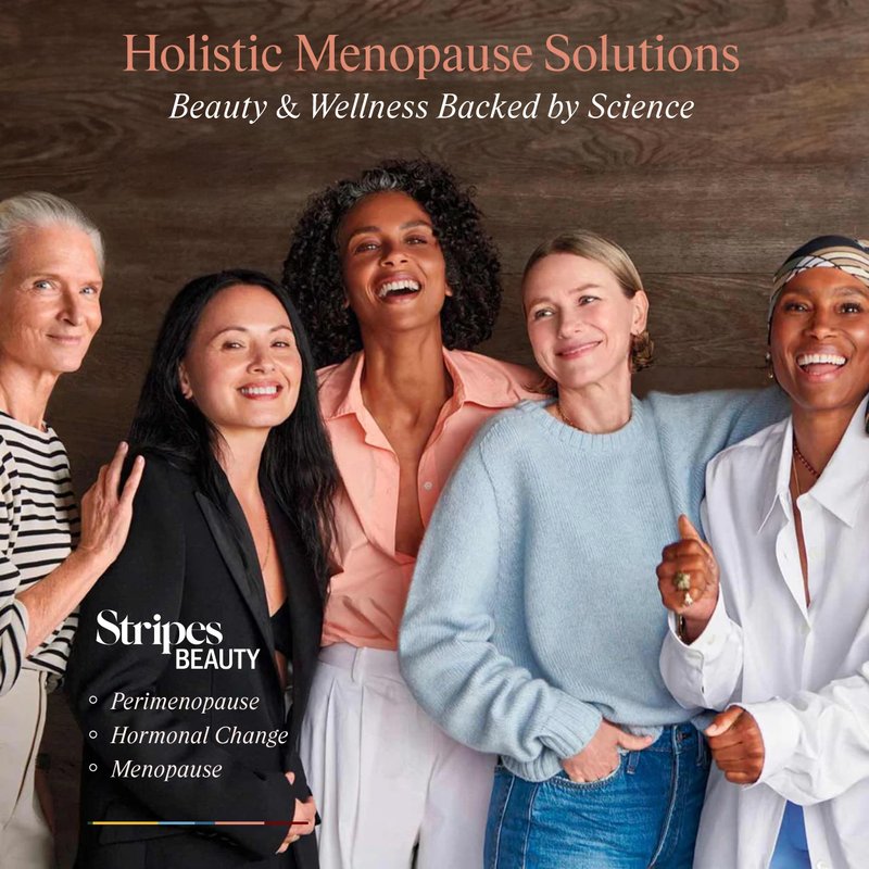Keep it clean with Stripes Beauty (by Naomi Watts) - Resting Clean Face. This extremely gentle, oh-so-creamy cleanser removes impurities, dirt, oil, pollution, and makeup, leaving your face ultra-soft and hydrated. Perfect for peri/menopausal skin that can become dry, rough, and super sensitive due to changing hormones. Formulated with Squalane and Ceramides, it helps improve the skin barrier and lock in moisture, while Ectoine and Embelia Extract soothe and calm any discomfort. The perfect first step in your AM/PM skincare routine, this cleanser ensures your skin stays refreshed, hydrated, and balanced. Dermatologist-approved, hypoallergenic, and hormone-free, it’s lab-tested and perfect for sensitive skin. Proven clinical results show 90% reported moisturized skin post-use, 91% noted softer skin, and 88% felt refreshed.