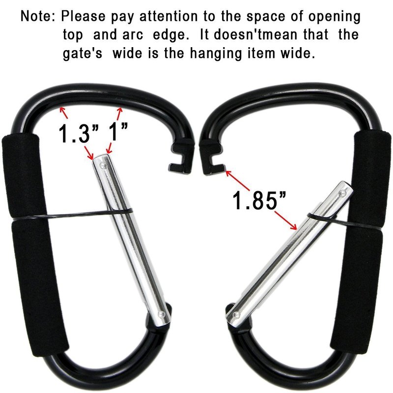 Stroller Hooks by Baby,2 pcs Carabiner Stroller Hook Organizer for Hanging Purses, Diaper Bag, Shopping Bags. Clip Fits Single/Twin Travel Systems, Car Seats and Joggers (Black)