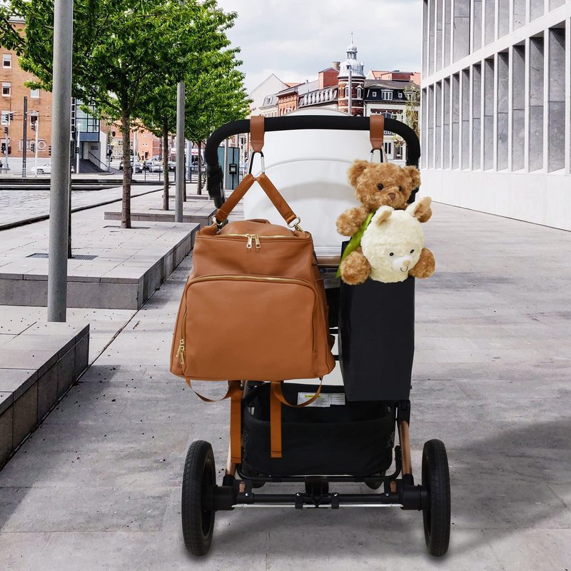 Stroller Hooks for Hanging, 2 PCS Durable Leather Style Stroller Clip Straps, Baby Stroller Hooks for Diaper Bags Grocery Shopping Bags, Mommy Hook for Stroller (Brown)